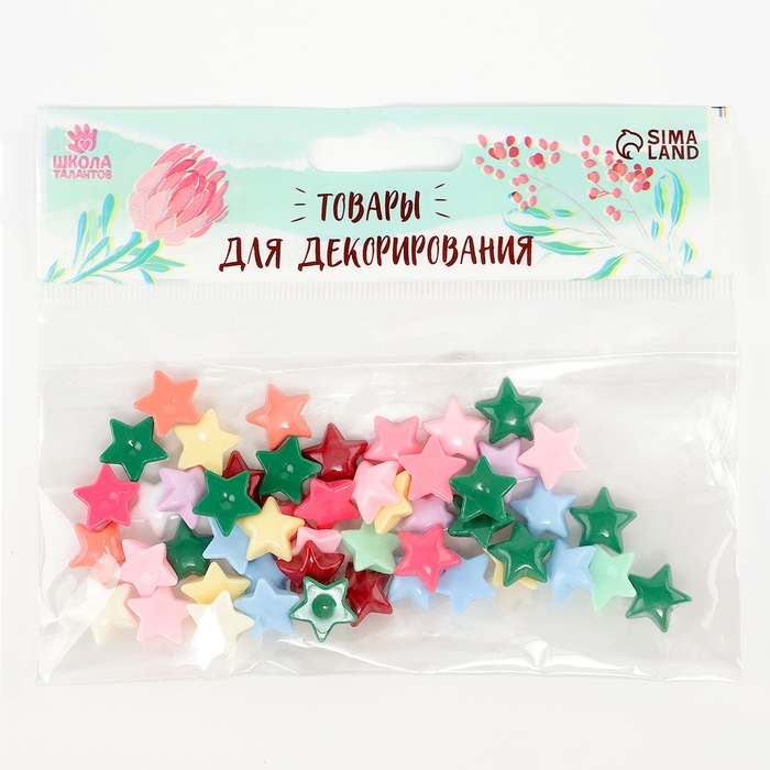 Кабошоны «Звёздочка» — это яркие и привлекательные декоративные элементы, изготовленные из пластика. Набор включает 50 разноцветных кабошонов, каждый размером 1,5 × 1,5 × 0,2 см. Эти украшения могут стать прекрасным дополнением для создания бижутерии, декора одежды, аксессуаров и других творческих проектов.