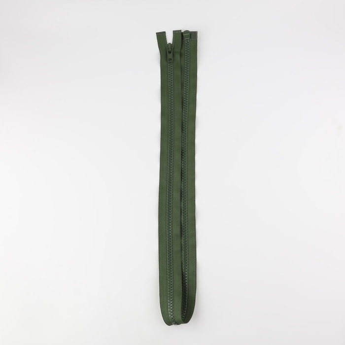 Данная молния имеет два замка на противоположных сторонах. Номер молнии обозначает ширину зубчиков в миллиметрах. Чаще всего такая застёжка используется для длинных изделий, например, пуховиков, спортивных сумок, кардиганов и т.п.