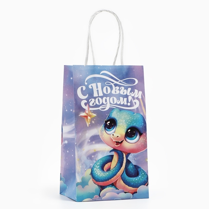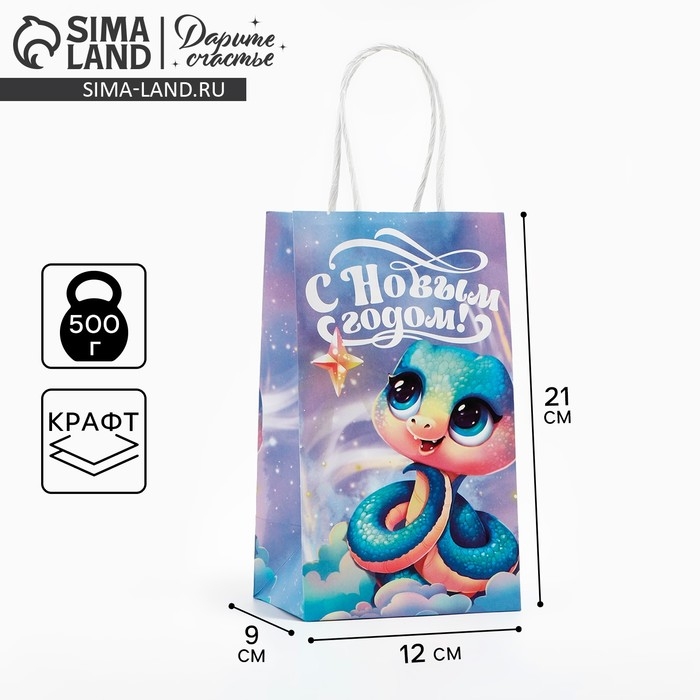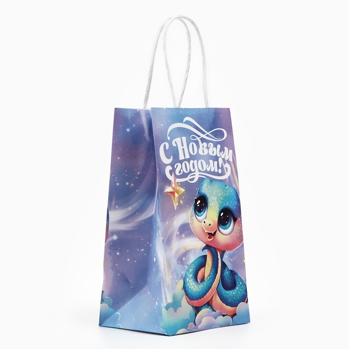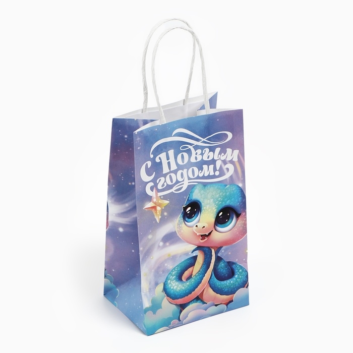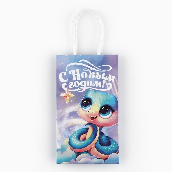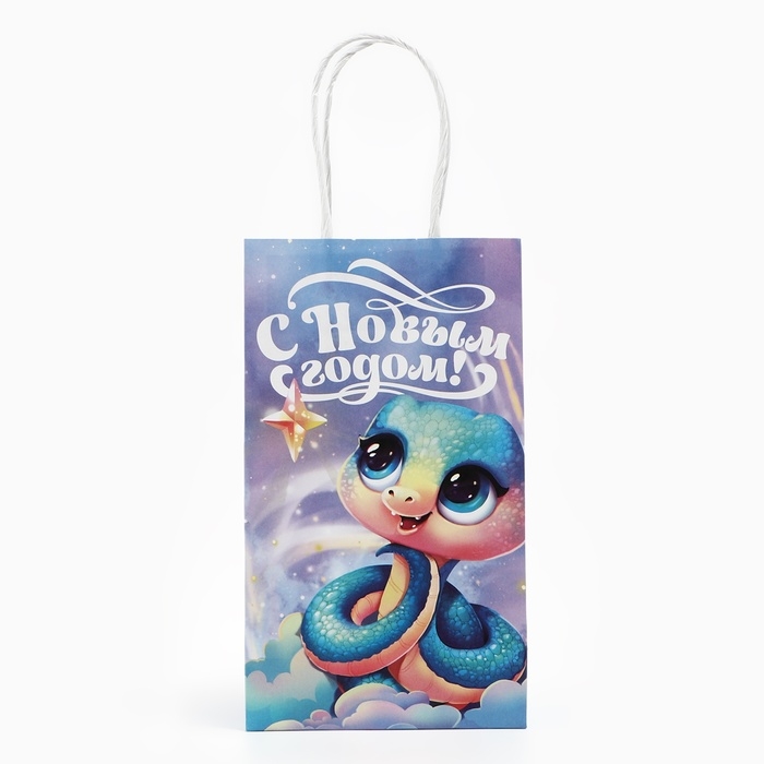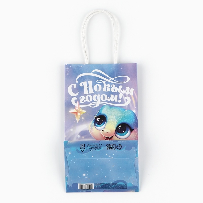 Пакет подарочный новогодний «Сказочный», змея, белый крафт, 12 х 21 х 9 см