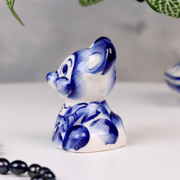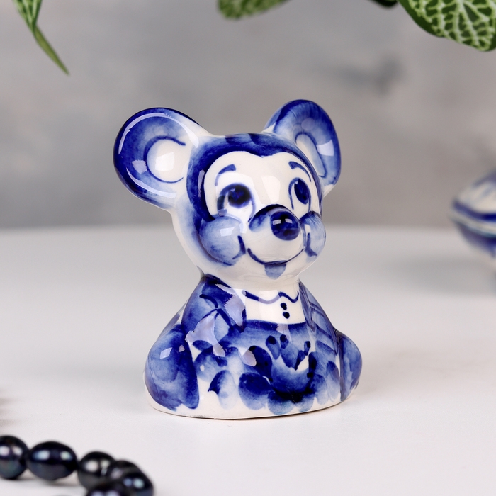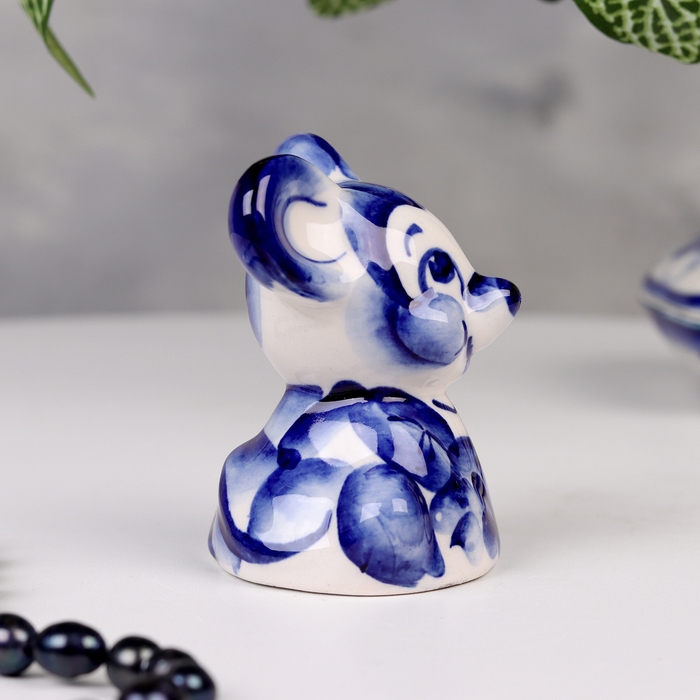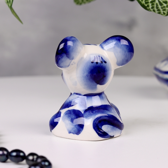 Сувенир гжель «Мышь», бело-синий,керамика,