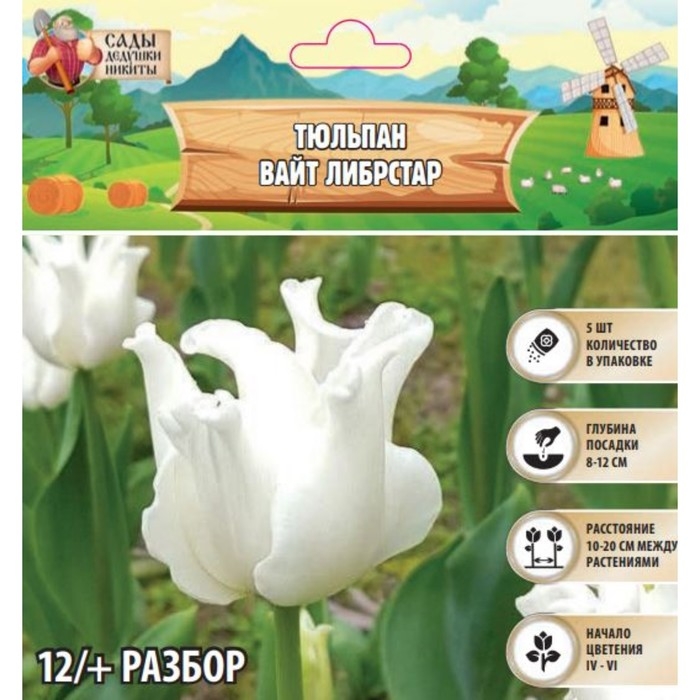 Тюльпан Вайт Либрстар, р-р 12/+, 5шт, Осень 2024