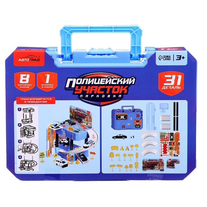 Парковка «Полицейский участок» — это увлекательный игровой набор для детей от 3 лет, который включает в себя 31 деталь для сборки, 8 дорожных знаков и полицейскую машинку. Этот набор станет отличным подарком для маленьких любителей автомобилей и полицейских историй.