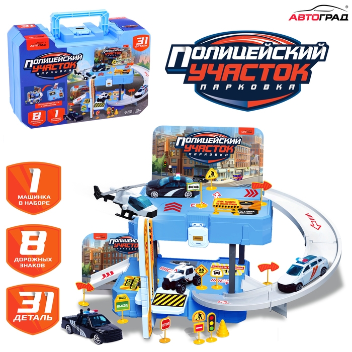 Парковка «Полицейский участок», 1 машинка, 8 дорожных знаков, 31 деталь