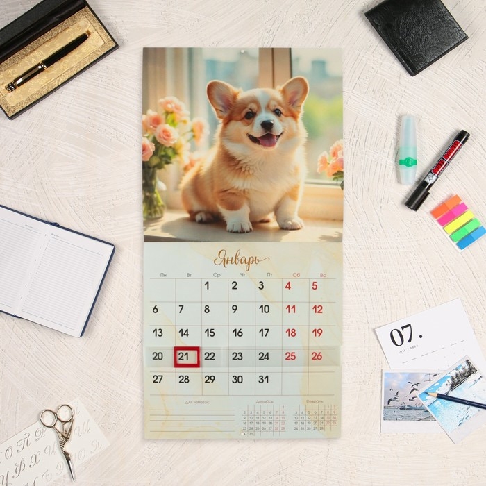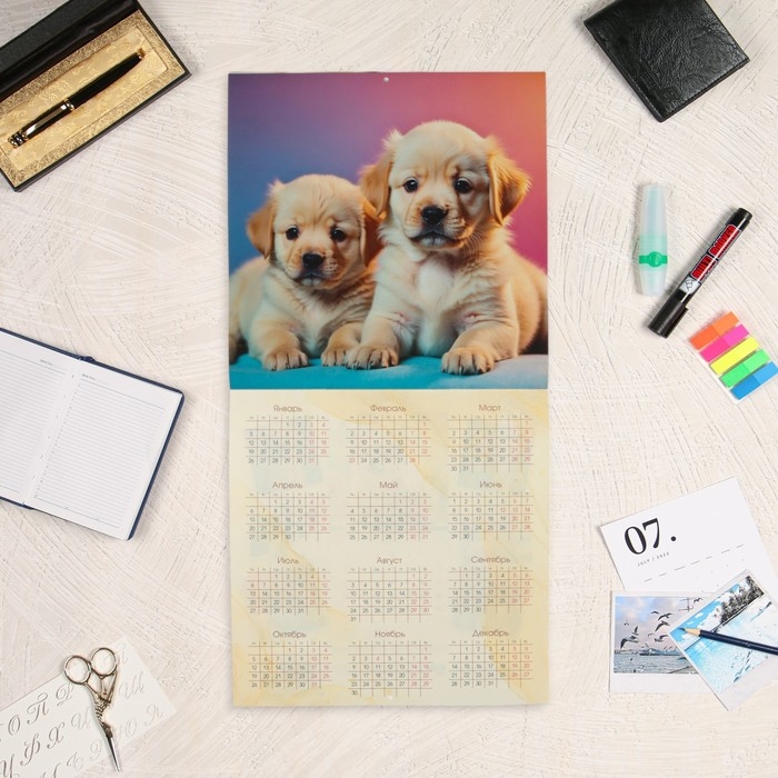 Календарь перекидной на скрепке "Пушистые друзья" с курсором, 2025 год, 29 х 29 см