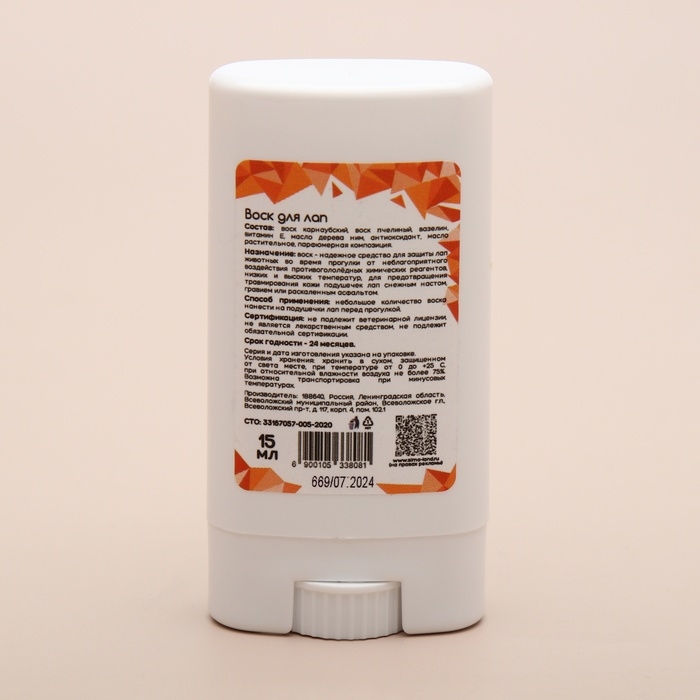Удобство использования: формат стика позволяет легко наносить средство перед прогулкой или выставкой, обеспечивая равномерное распределение воска по поверхности лап.