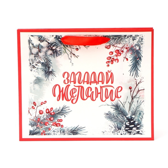 Пакет подарочный новогодний бумажный, "Загадай желание", 24 х 20 х 11 см.