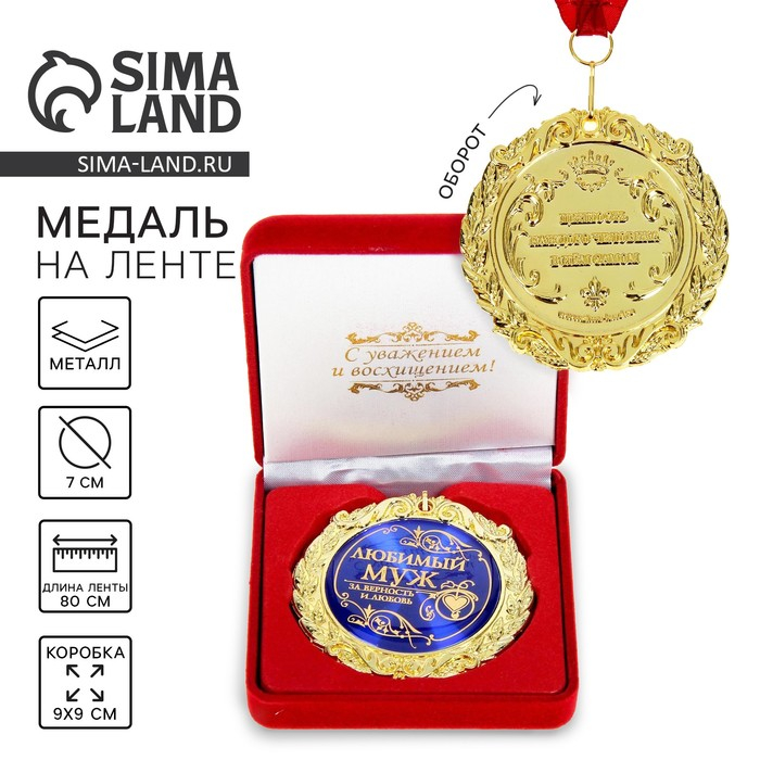 Медаль в бархатной коробке «Любимый муж», d=7 см.