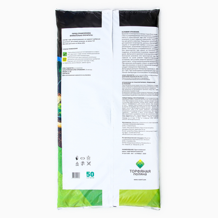 Торф Нейтрализованный "Торфяная поляна", 50 л
