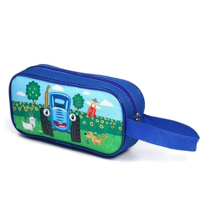 Сумка детская на молнии 22×11×1,5 см , Синий трактор