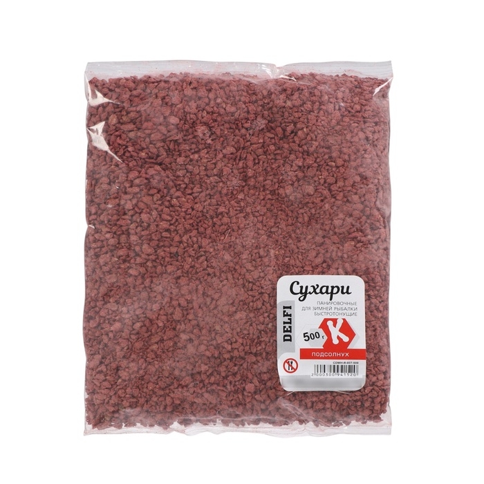 Сухарь DELFI панировочный, для зимней рыбалки, быстротонущий, красный, подсолнух, 500 г
