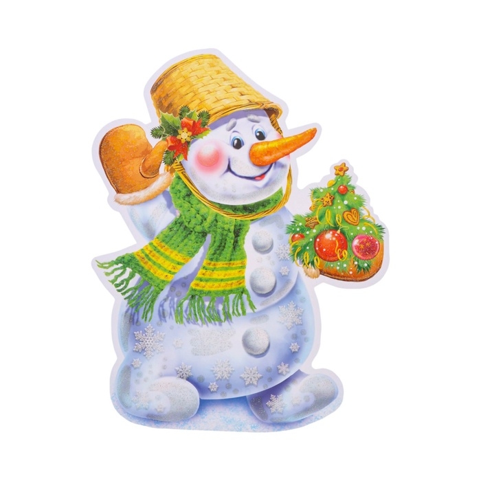 Плакат вырубной "Снеговик в шарфе" глиттер, 23 х 22 см