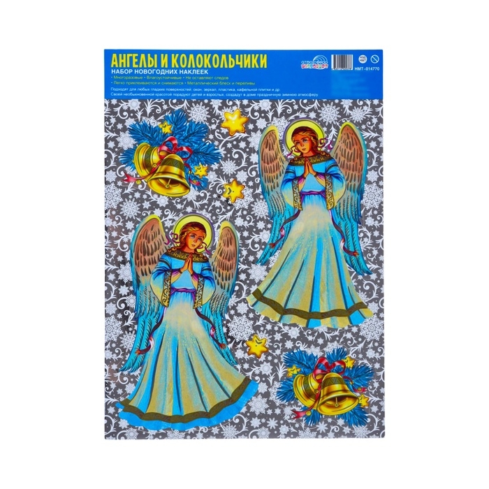 Набор наклеек новогодних "Ангелы и колокольчики" металлизация, 33 х 23,5 см