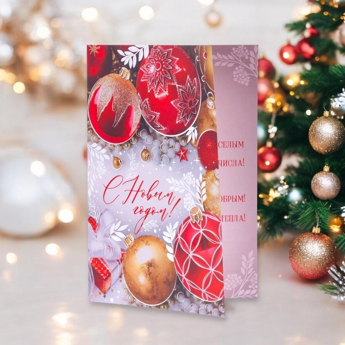 Открытка "С Новым Годом!" тиснение, шарики, 18 х 12 см