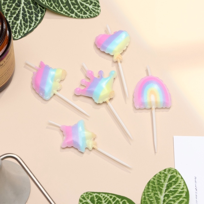 Набор свечей для торта, 5 шт "Детская радужная вечеринка", разноцветные