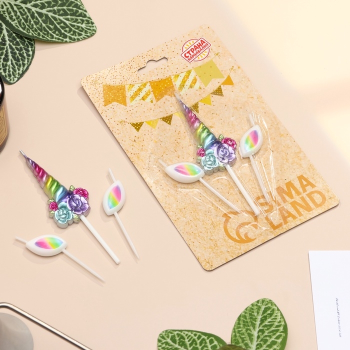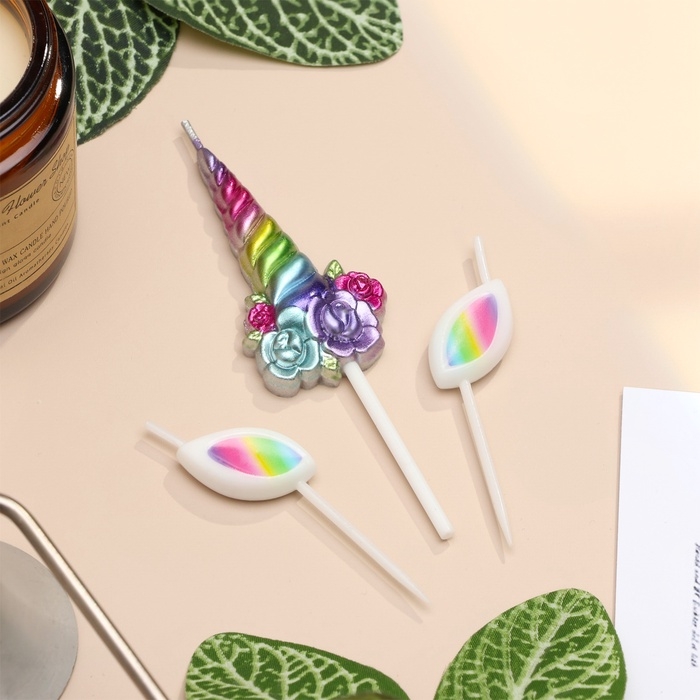 Набор свечей для торта, 3 шт "Волшебный единорог", разноцветные