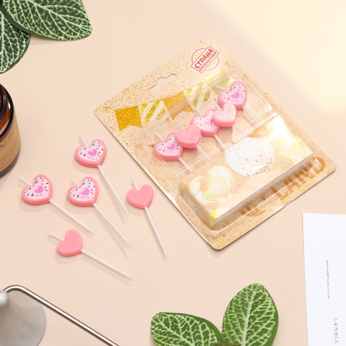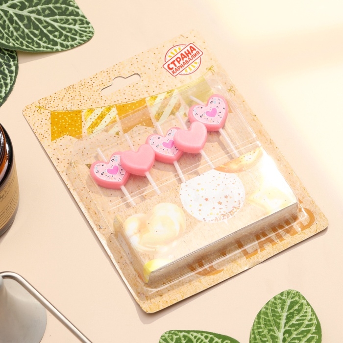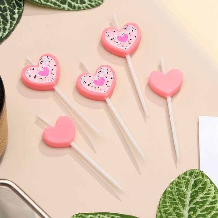 Набор свечей для торта, 5 шт "Сердца", розовый