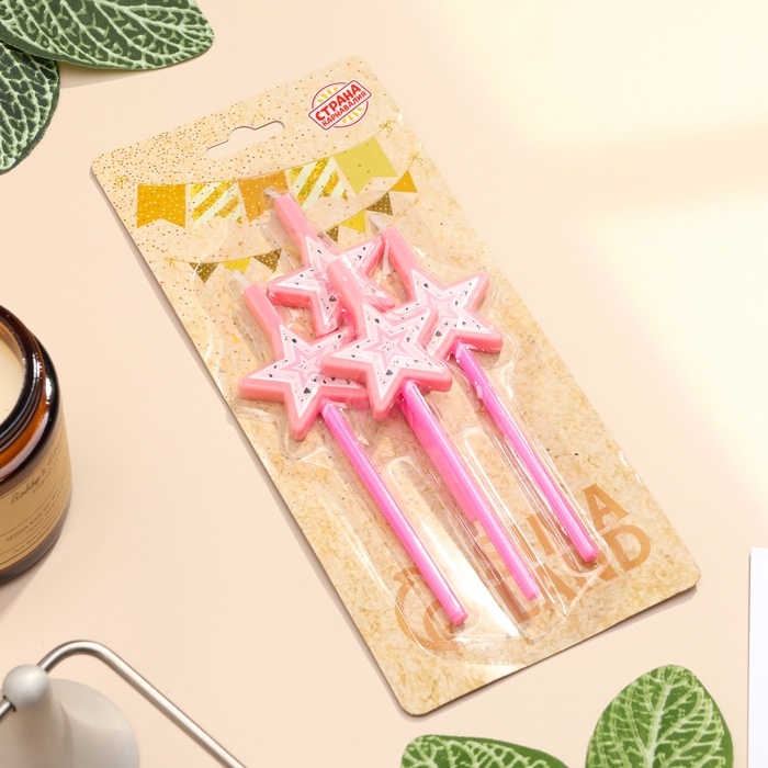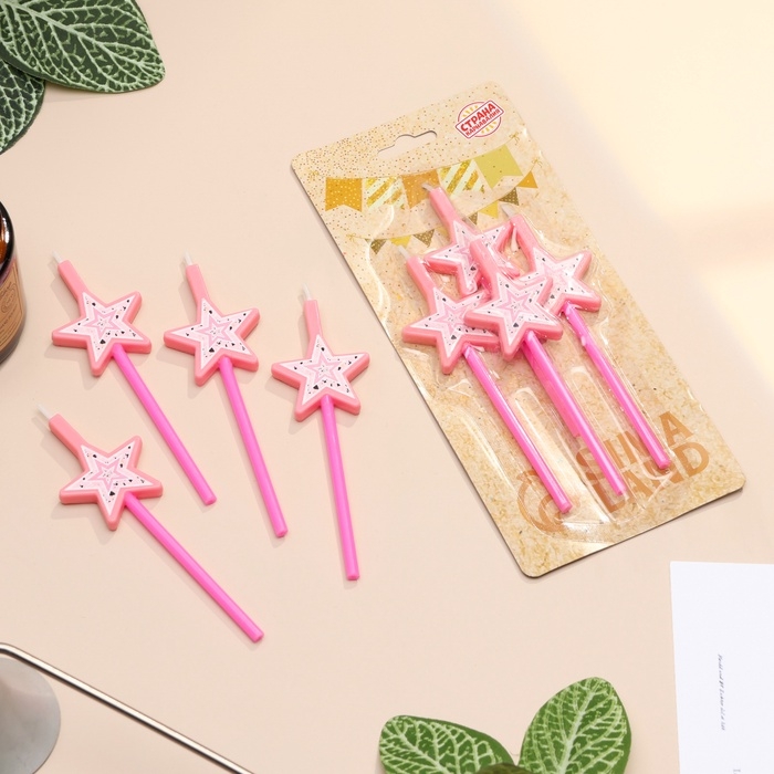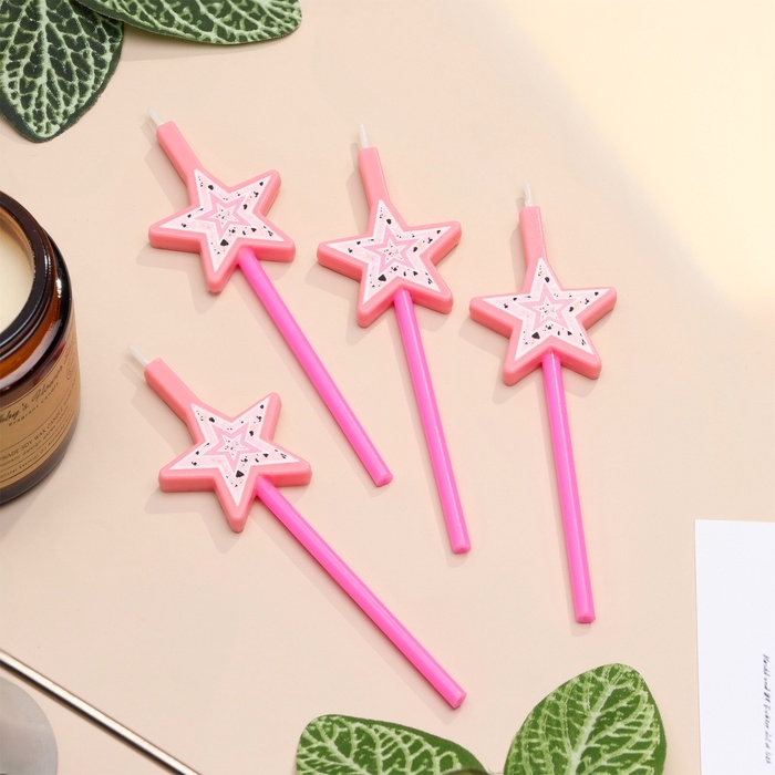Свечи для торта, 4 шт "Волшебная палочка. Звёзды", розовый