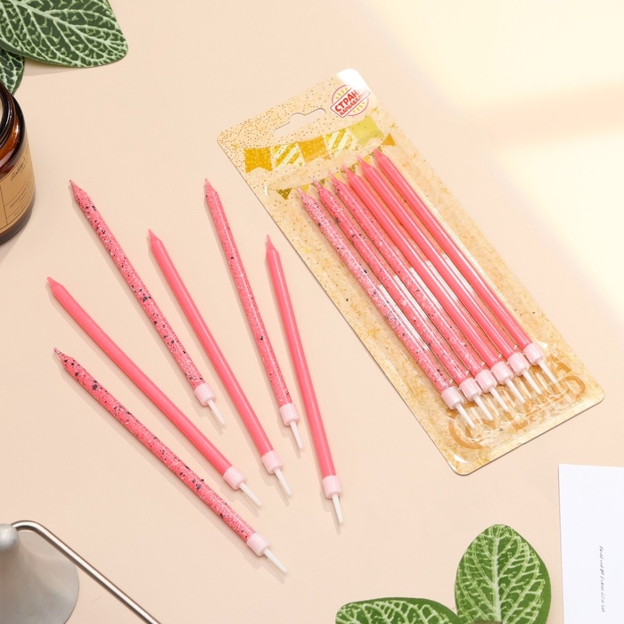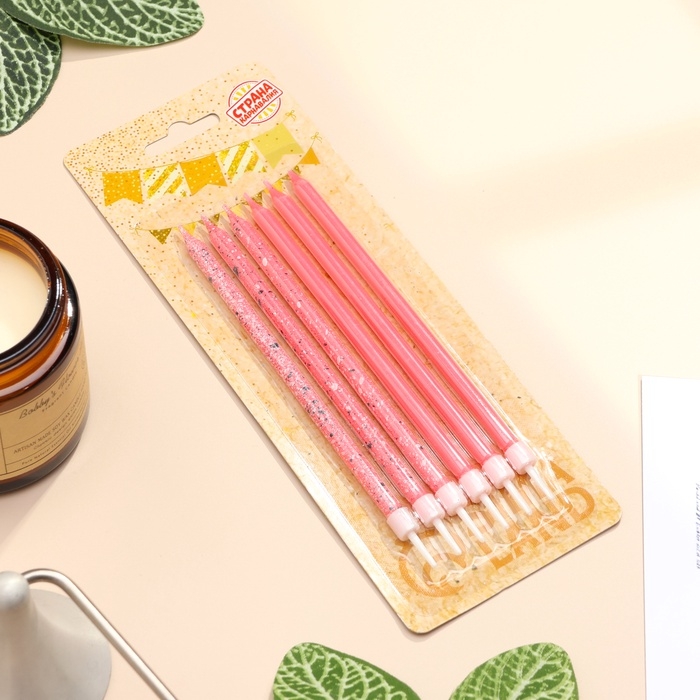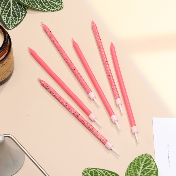 Свечи для торта "Блестящая вечеринка", 6 шт, розовые, высокие