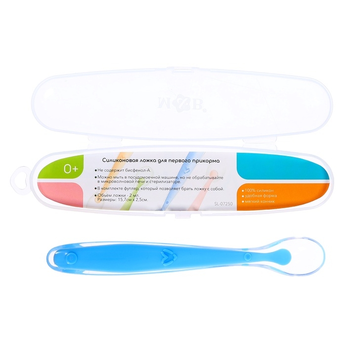 Голубая силиконовая ложка станет отличным решением для первого прикорма. Её мягкий кончик, компактный размер и наличие контейнера обеспечат комфортное и безопасное кормление малыша в домашних условиях и вне дома.