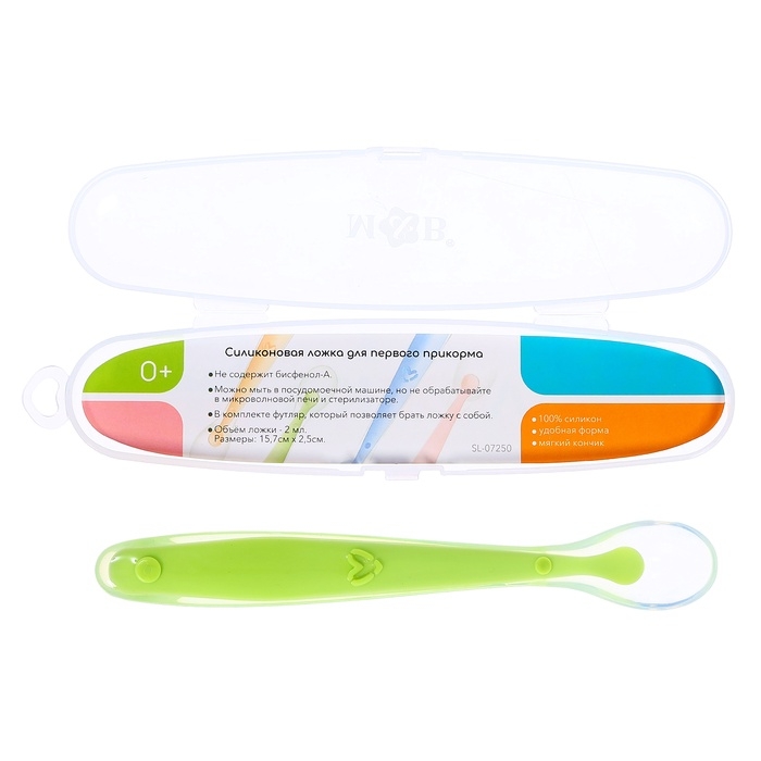 Ложка детская, для первого прикорма, в контейнере, зелёная