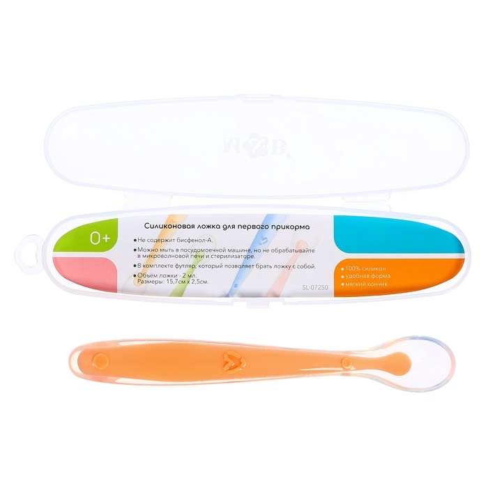 Ложка детская, для первого прикорма, в контейнере, оранжевая