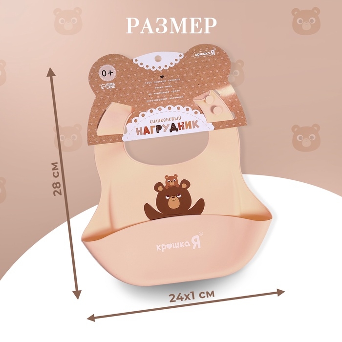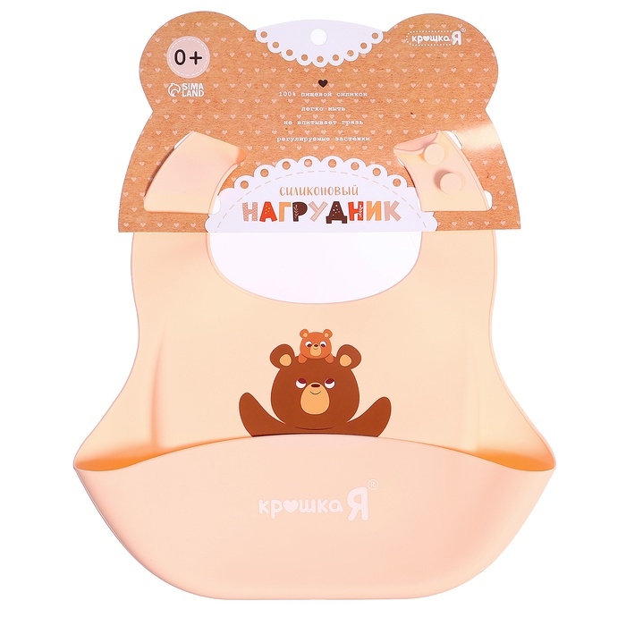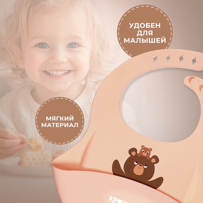 Нагрудник для кормления «Мишутка», силиконовый, с карманом, бежевый