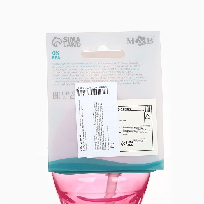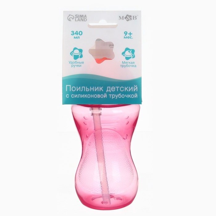 Поильник с силиконовой трубочкой, 340 мл., цвет Розовый