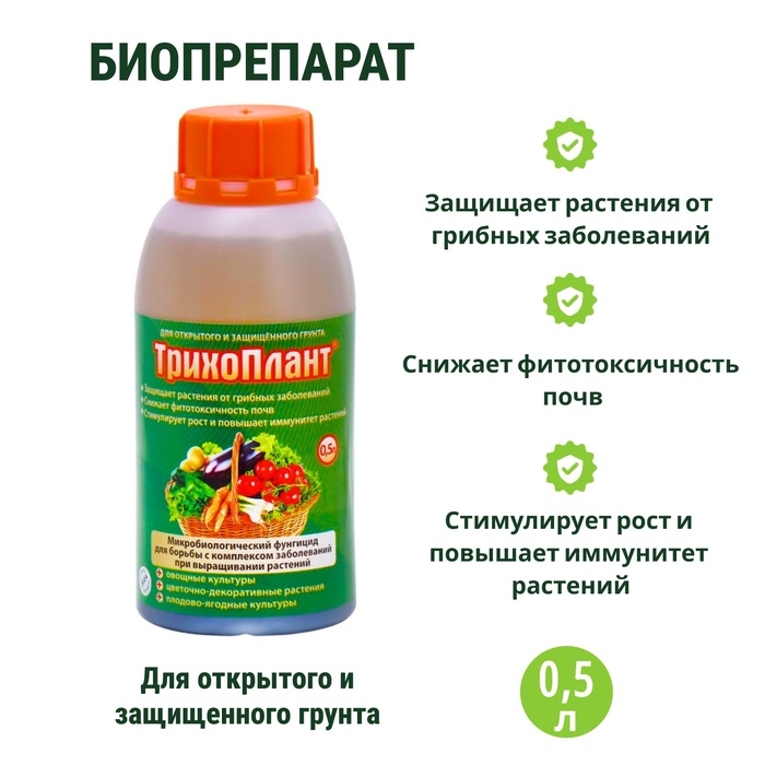 Биофунгицид "Трихоплант", для защиты растений от грибных заболеваний, 0,5 л