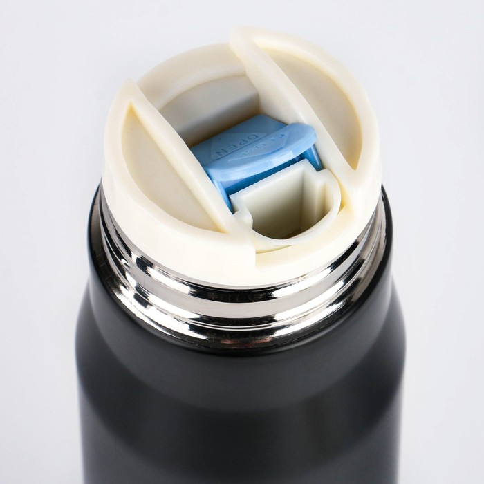 - Вакуумная крышка с кнопкой надежно удерживает жидкость внутри емкости.