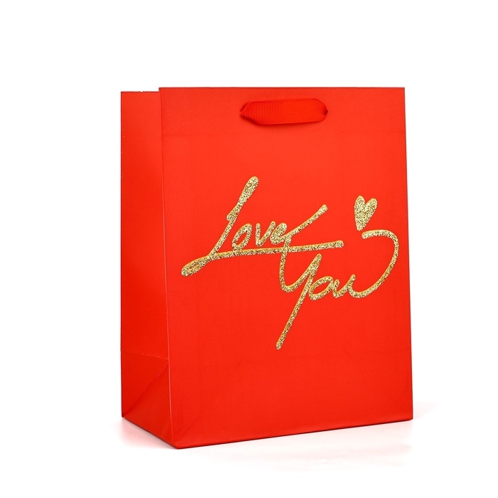 Пакет ламинированный вертикальный «Люблю тебя», глиттер, MS, 18 × 23 × 10 см