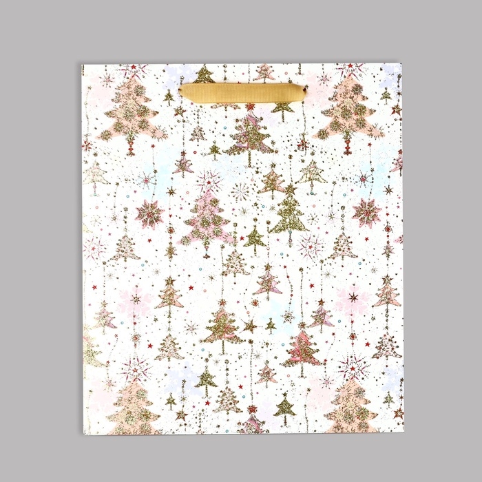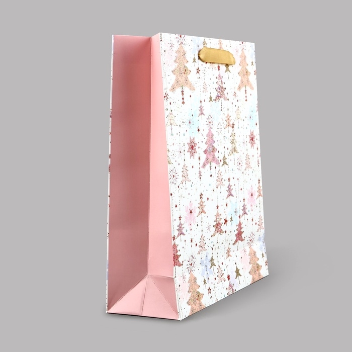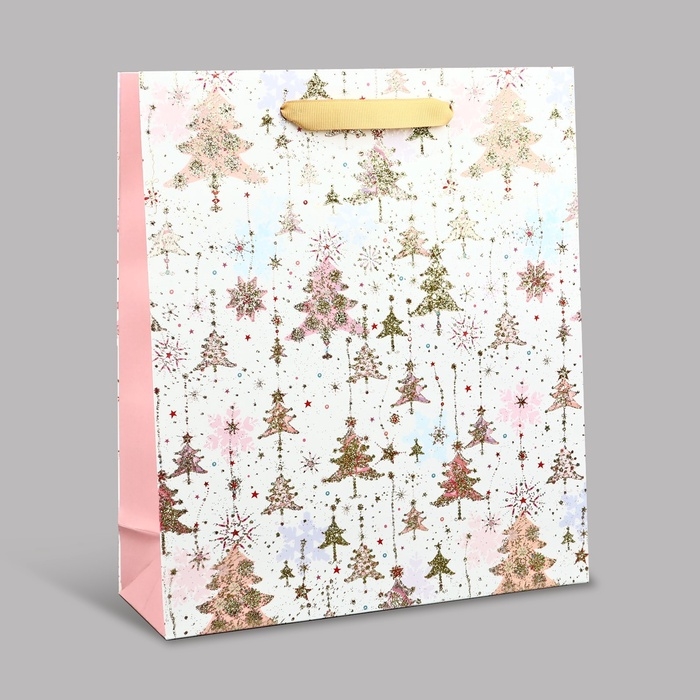 Пакет подарочный новогодний ламинированный «Ёлочки», M 30 х 26 х 9 см