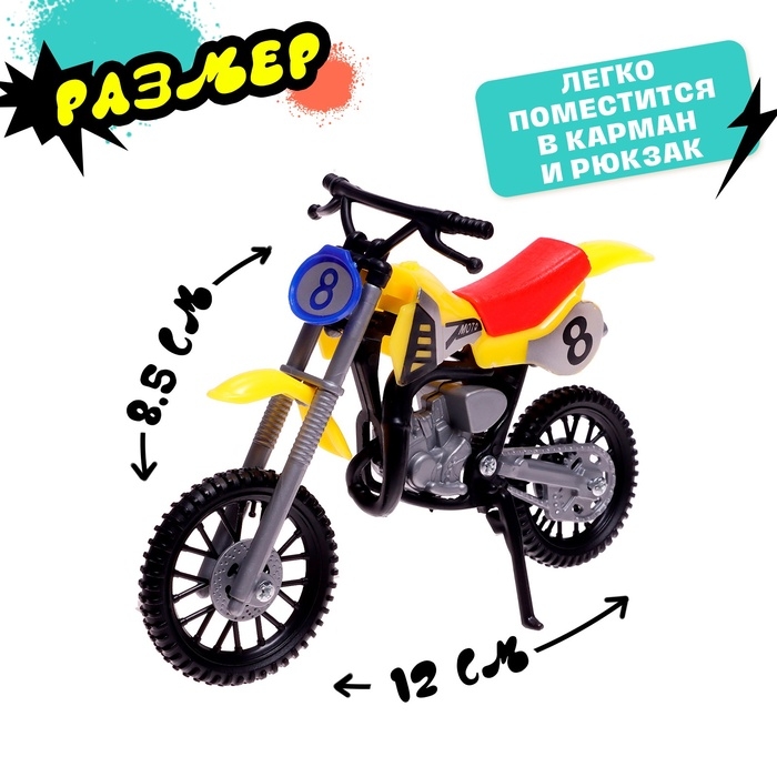 - Размеры фингер байка: 12 × 5 × 8,5 см.