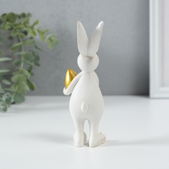 Сувенир полистоун "Кролик пасхальный с золотым яйцом" 4х4х13 см