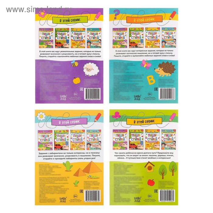 Набор многоразовых книжек «Пиши-стирай. Играем в дороге» 4 шт., в пакете