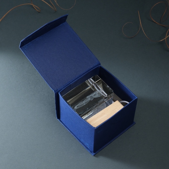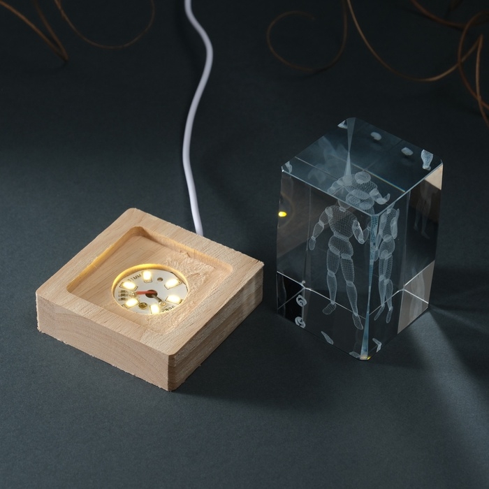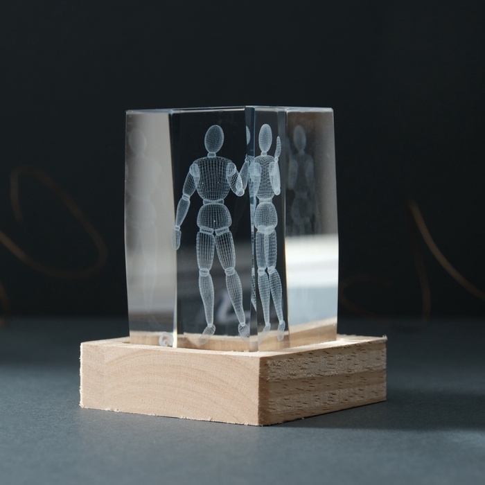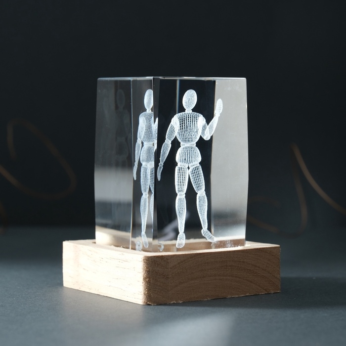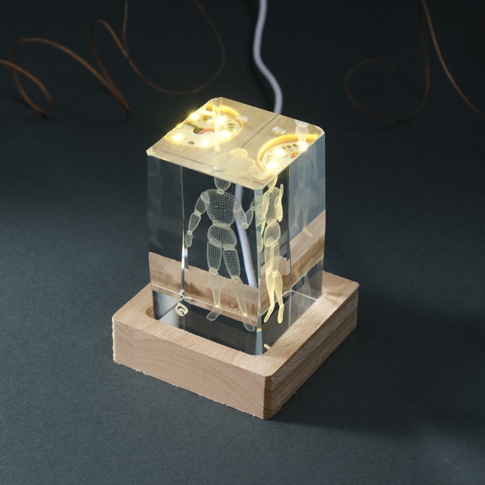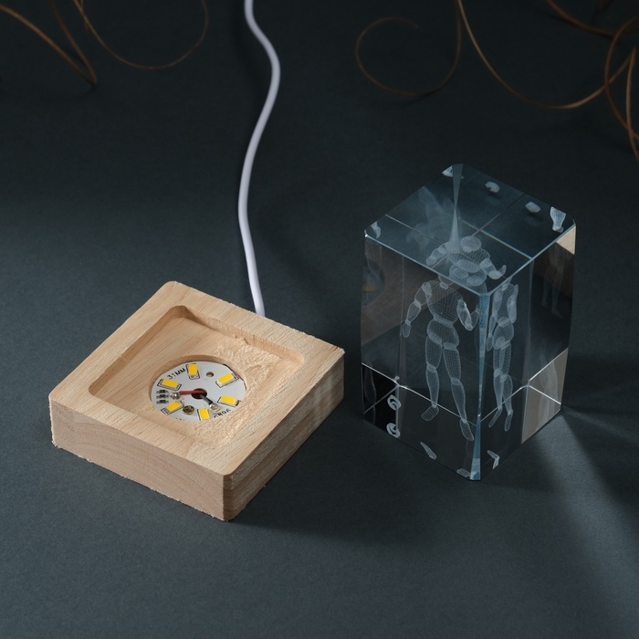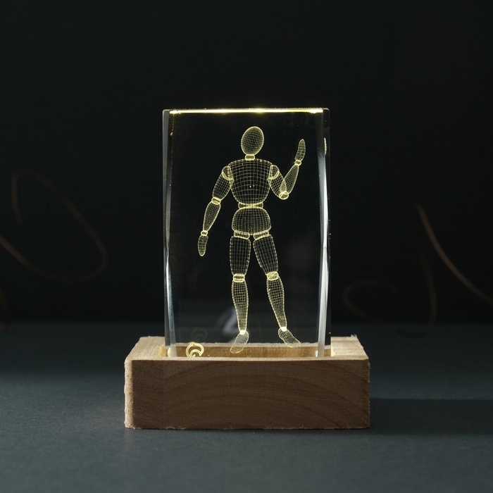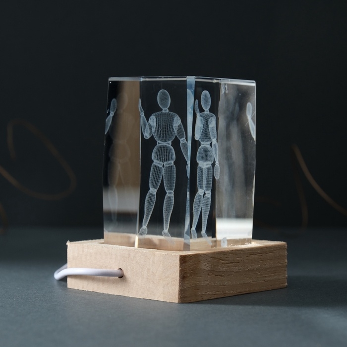 Сувенир стекло подсветка "Прямоугольник. Шарнирный человек" подставка дерево, USB 7х7х10
