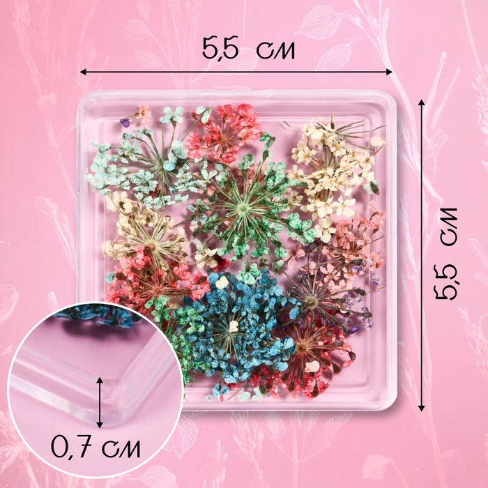 Сухоцветы для декора ногтей, в футляре, вид МИКС
