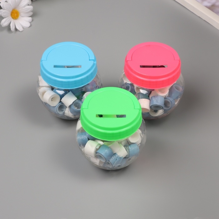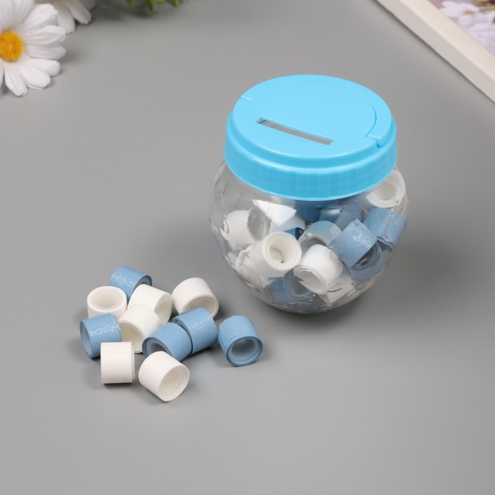Клейкая лента пластик в банке "Белый и серо-голубой" н-р 40 шт 1,2 см, дл. 0,9 м 7х7х9 см