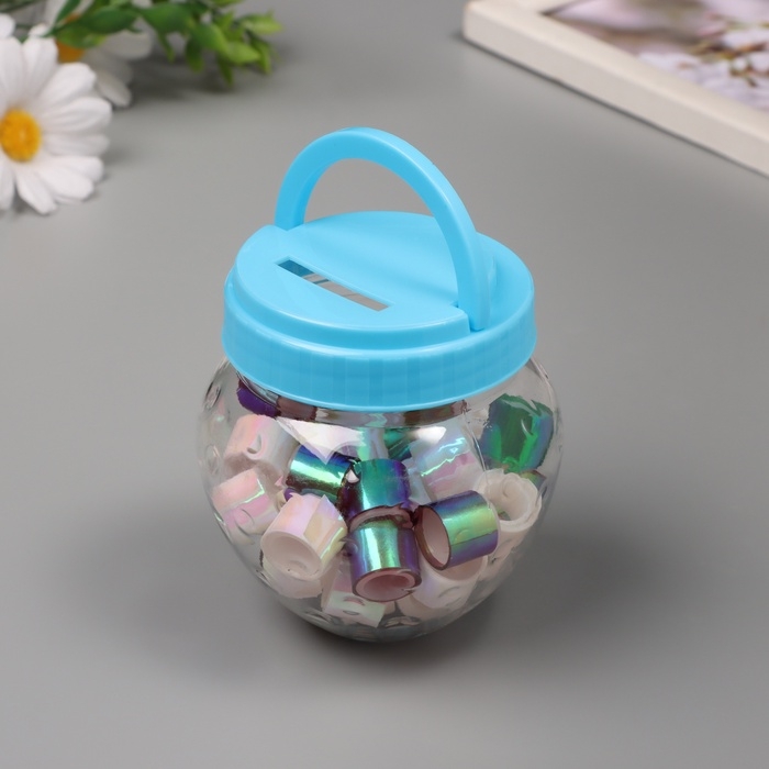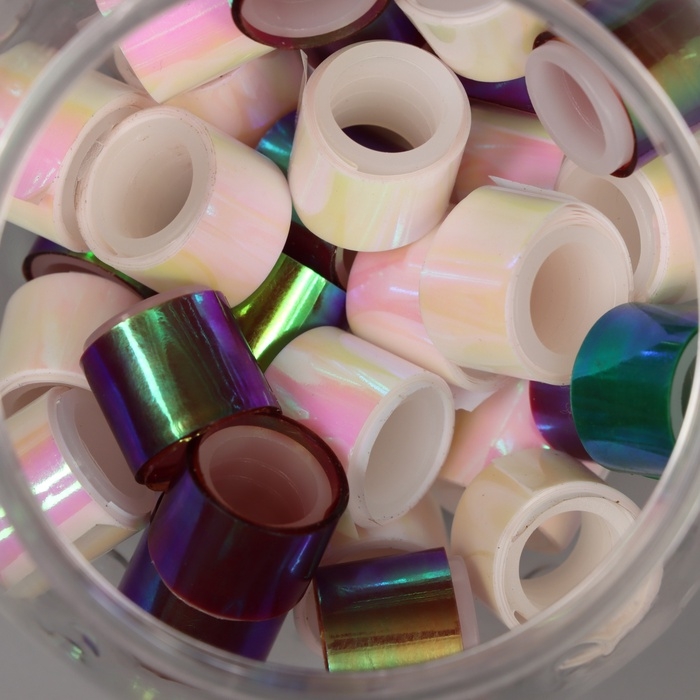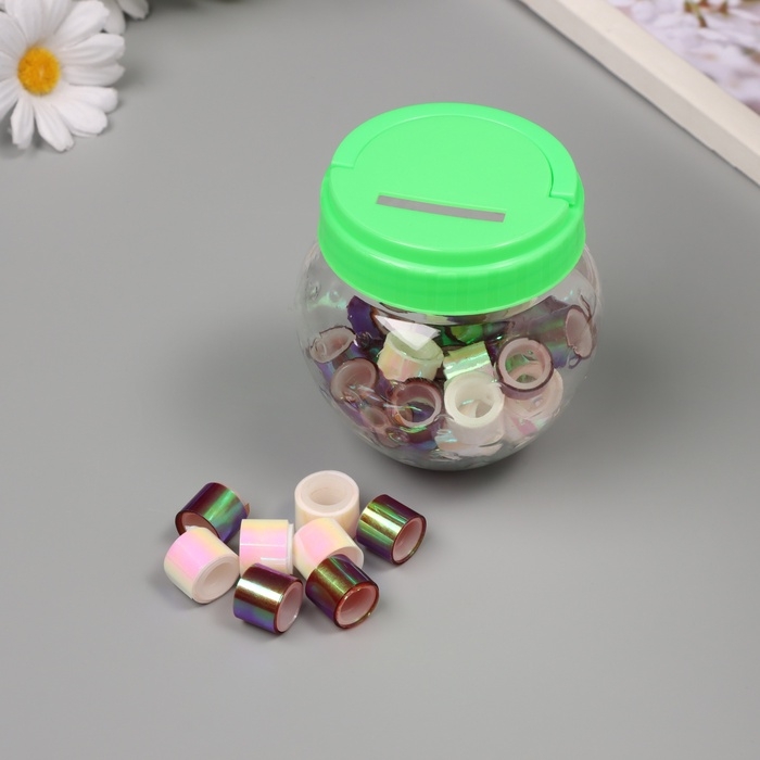 Клейкая лента пластик в банке "Перл. Белый и фиолет" н-р 40 шт 1,2 см, дл.0,9 м 7х7х9 см