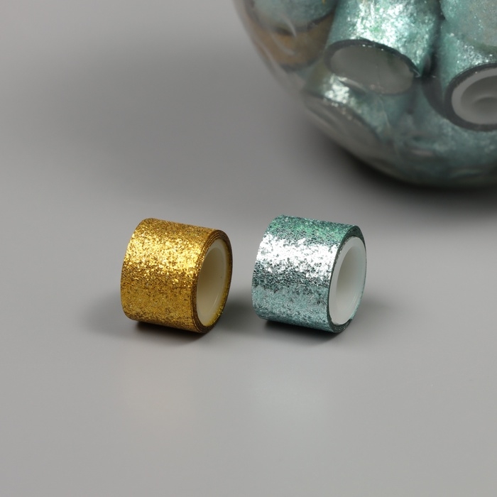 Клейкая лента пластик в банке "Шайн. Золото и голубой" н-р 40 шт 1,2 см, дл.0,9 м 7х7х9 см