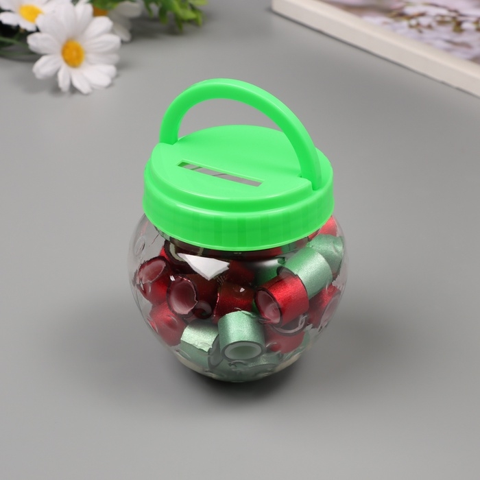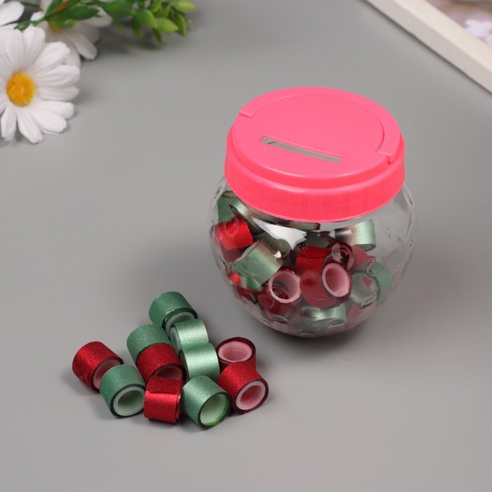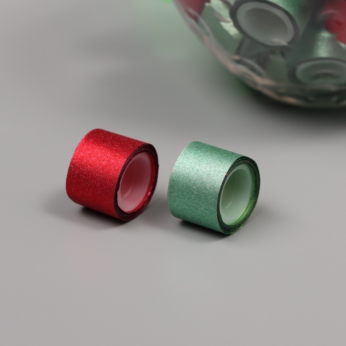 Клейкая лента пластик в банке "Глори. Красный, зелёный" н-р 40 шт 1,2 см, дл.0,9м 7х7х9 см