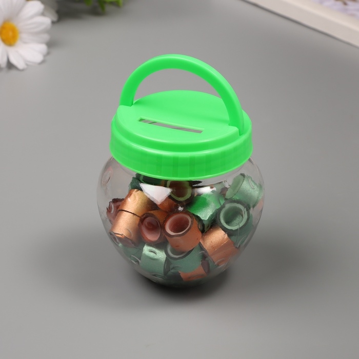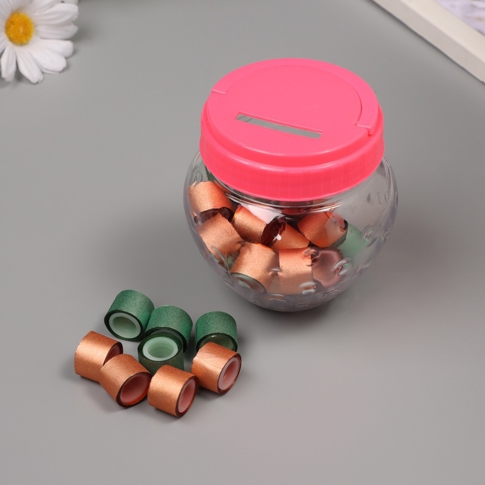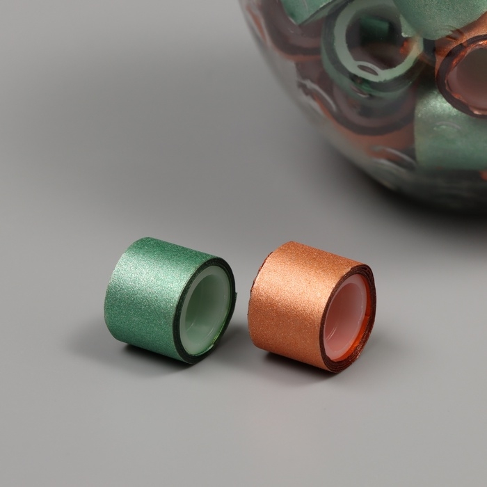 Клейкая лента пластик в банке "Глори. Зелёный, оранж" н-р 40 шт 1,2 см, дл.0,9 м 7х7х9 см