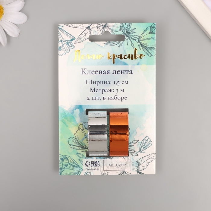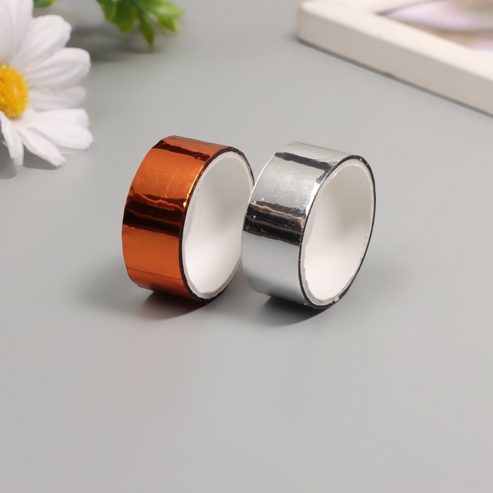 Клейкая лента декоративная пластик "Металлик. Серебро, бронза" н-р 2 шт 1,5 см, дл. 3 м