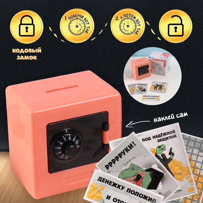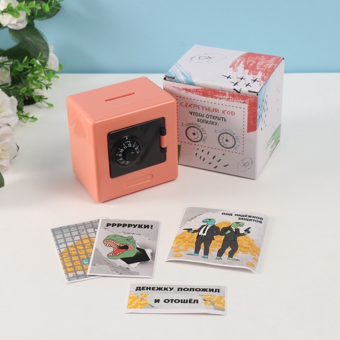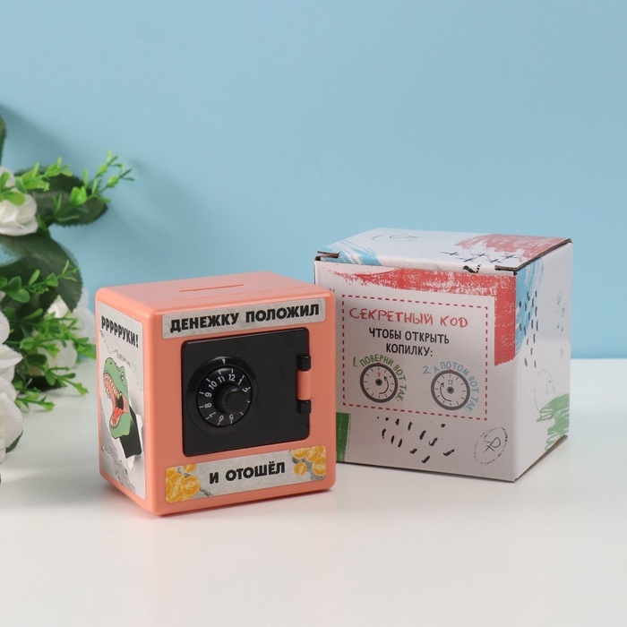 Копилка пластик "Сейф. Динозавры в чёрном" 8,5х6х8,5см