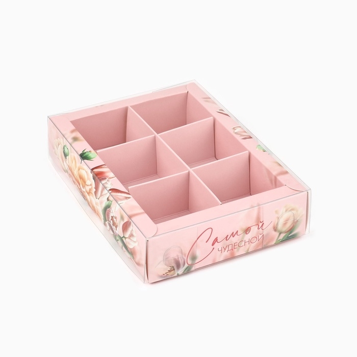Коробка под 6 конфет с ячейками «Самой чудесной», 10 х 14.5 х 3 см