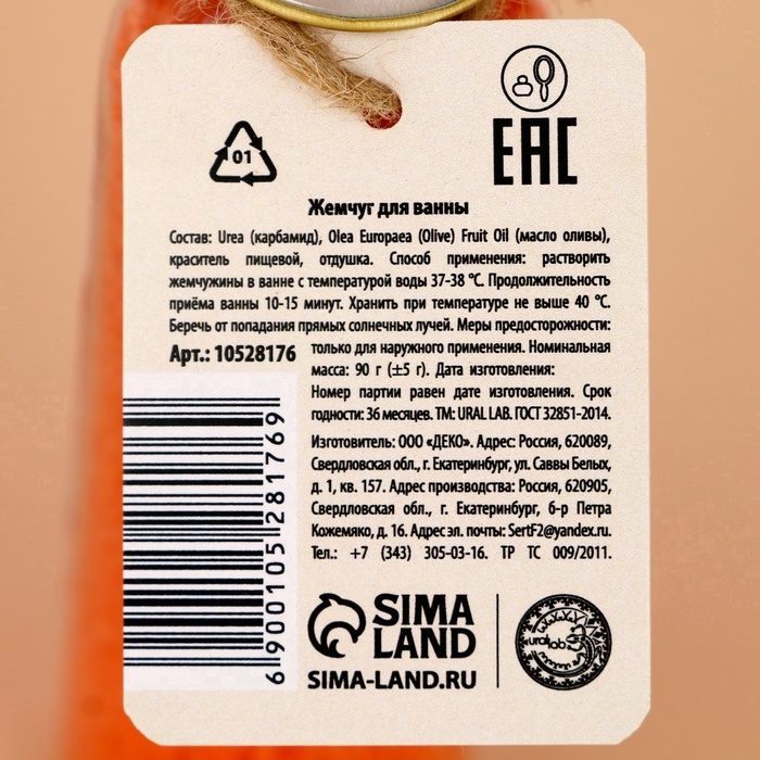 Жемчуг для ванны URAL LAB «Дед Мороз», 85 г, аромат глинтвейна, Новый Год