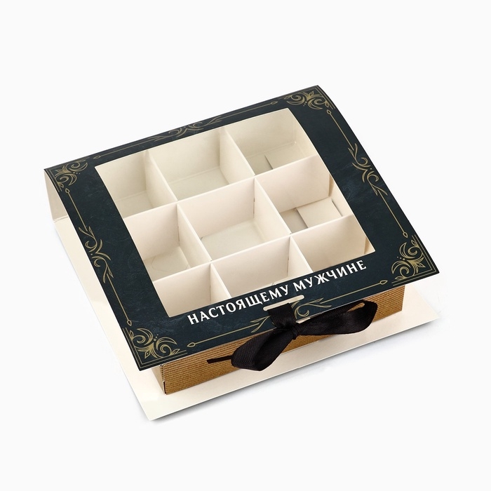 Коробка под 9 конфет с ячейками «Лучшему мужчине» 14.5 х 13.5 х 3.5 см