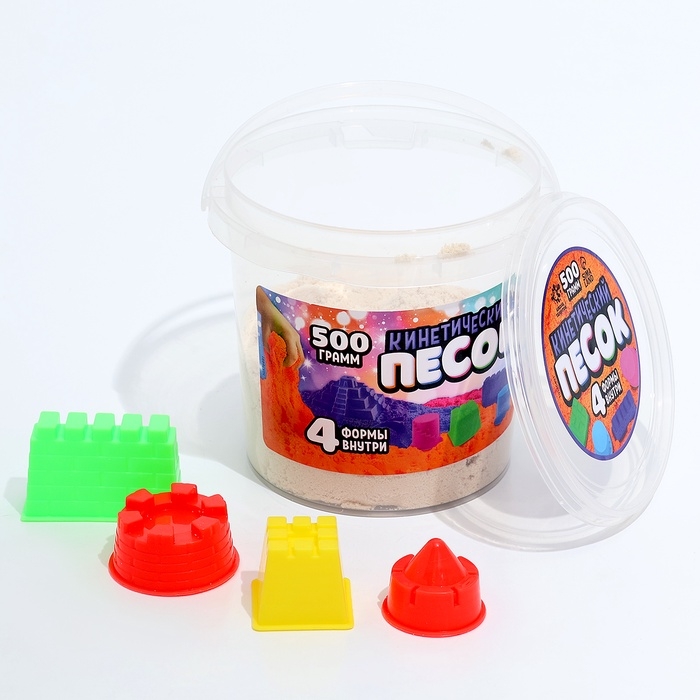 Кинетический песок, 4 формочки, 500 гр, цвет белый