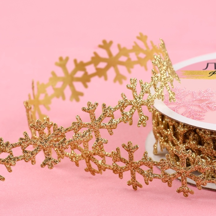 Лента декоративная фигурная «Снежинки», 20 мм, 9 ± 0,5 м, цвет золотой