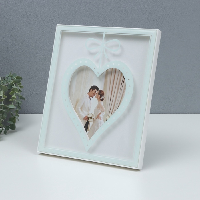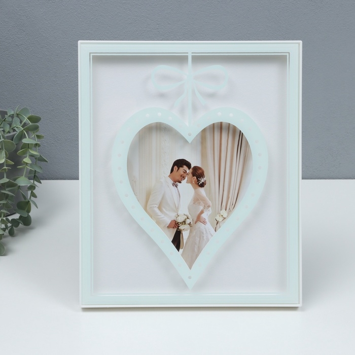 Фоторамка пластик на 1 фото 20х25 см "Сердце с бантиком" серебро бумага тиснение 26х2х31 см 107050