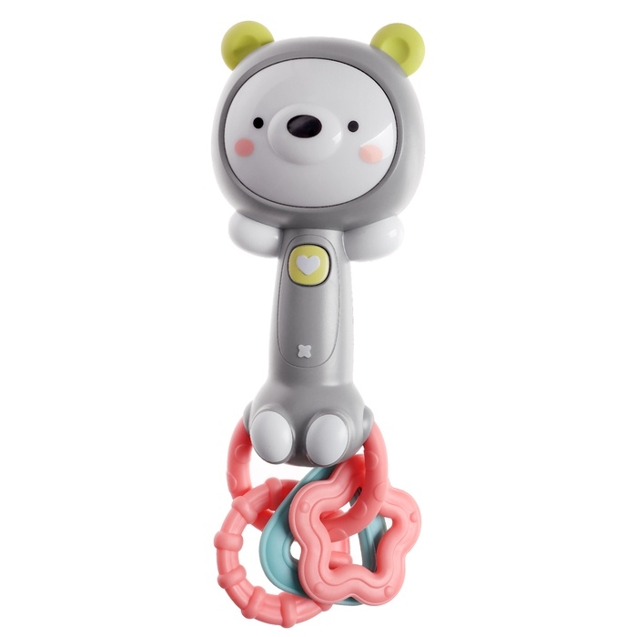 - Звуки погремушки стимулируют развитие слуха и мелкой моторики.